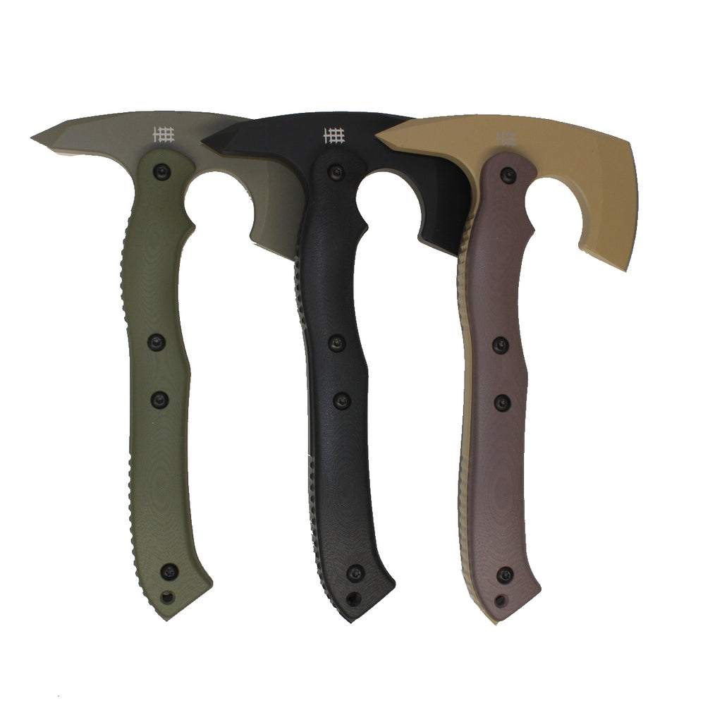 The CRA-02 (Compact Rescue Axe) from Halfbreed Blades, is an extremely compact, easy to reach cutting and impact tool, designed and built with no compromise in durability or performance. Made ready for extreme hard use, this multi-purpose tool is ideally suited for MOE, CQB, Rescue, and Survival roles and tasks.