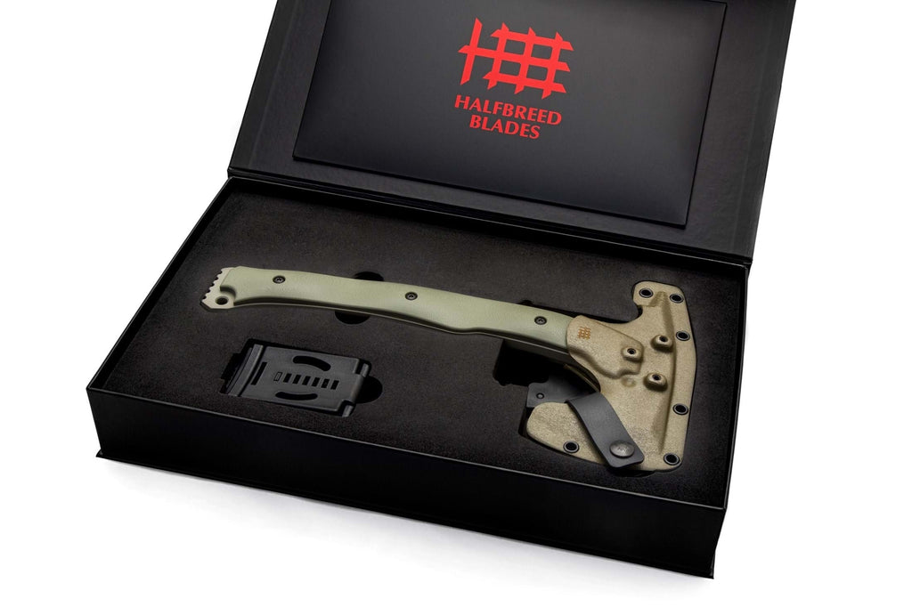 The LRA-01 (Large Rescue Axe) from Halfbreed Blades, is a tactical axe made ready for Hardcore use as an impact/MOE/Rescue tool. Designed for military personnel and first responders who require a more compact axe, the LRA is capable of devastating performance in the most demanding of environmental conditions.