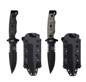 As a versatile tool, the SOFMAK features two working edges. The primary edge is tailored for dynamic use, with serrations at the base of the blade for powerful cutting during slashing movements. The 5.3" blade ensures optimal penetration, while the spine’s working edge is perfect for everyday tasks like cutting 550 cord, opening boxes, and making tinder for a fire. This secondary edge allows the primary edge to stay razor-sharp.