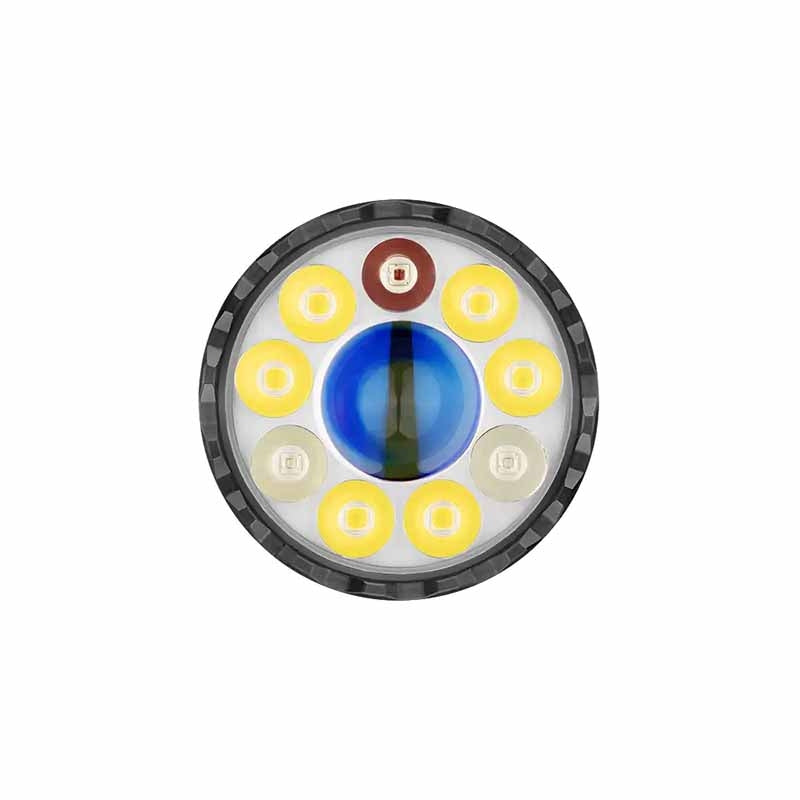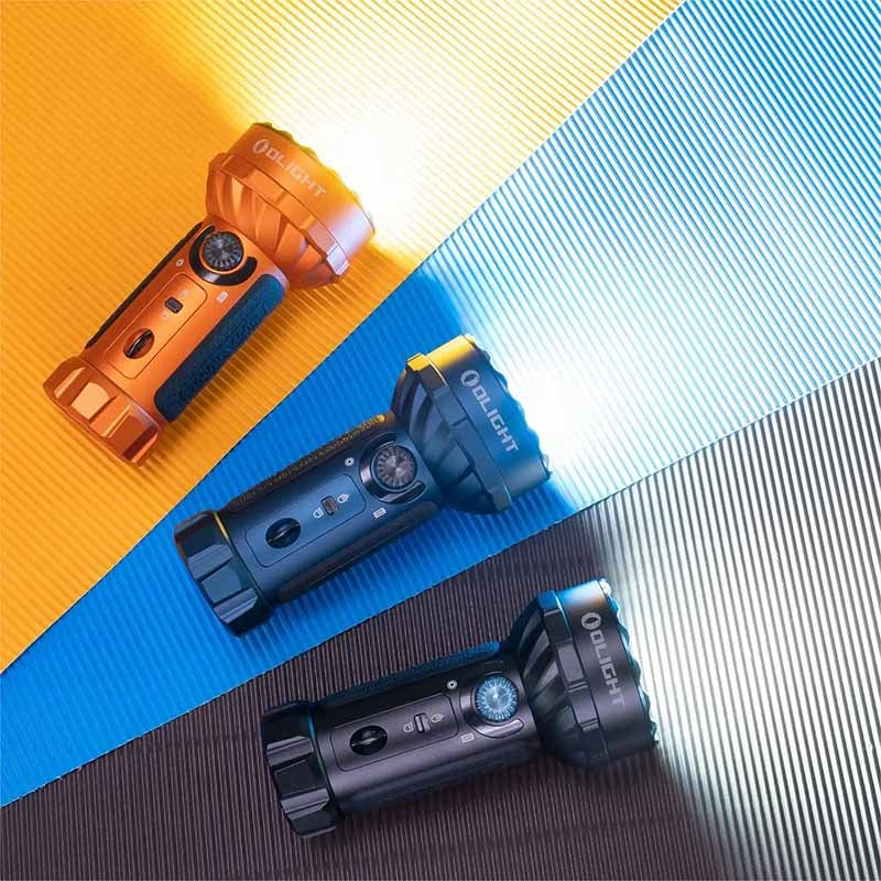 Large Battery Capacity: Customized 24Wh 32650 rechargeable lithium battery ensures extended runtime. Now compatible with Olight’s MCC3 magnetic charging cable. Uniformly Distributed RGB Colour LEDs: Three RGB color LEDs are uniformly distributed around the converging lens, making it suitable for use during any occasion. Dual-beam with Spot and Flood: An array of LEDs offers two powerful beam choices: a 600-meter max throw from the central LED’s spotlight beam, or a 7,000-lumen max output floodlight beam from the 9 surrounding LEDs. Safest in its Class: A built-in thermal sensor and cooling fins to ensure safety in case of overheating and lens obstruction.