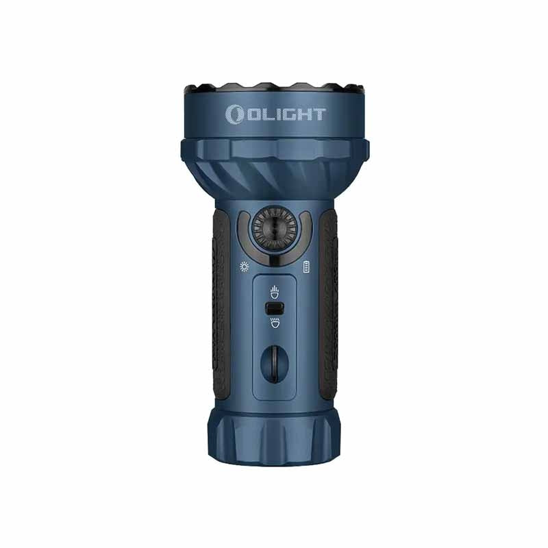 - Powered by a customized 24Wh 32650 rechargeable lithium battery, it offers extended runtime and is compatible with Olight's MCC3 magnetic charging cable.