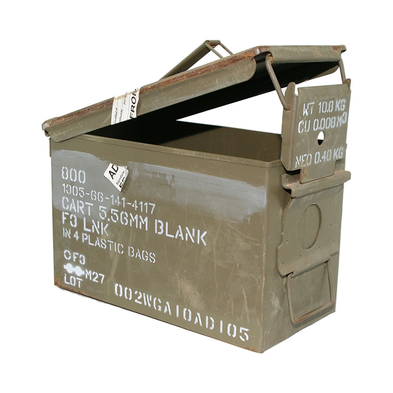 The M2A1 ammunition box has been used by the U.S. military for small and medium calibre cartridges, for artillery fuses and more, including this partial list: