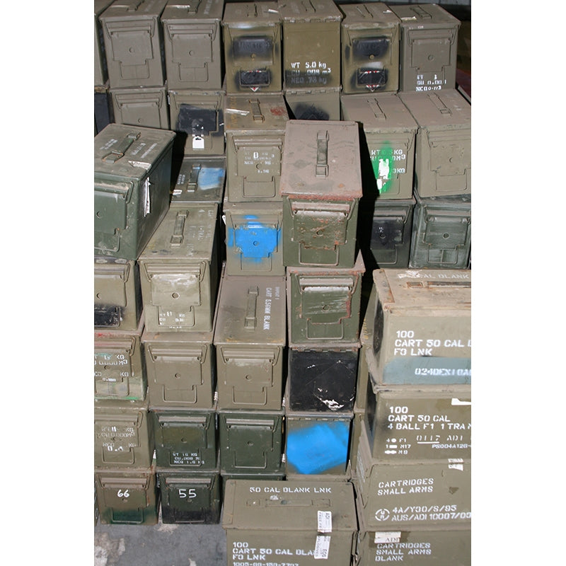 The M2A1 ammo can was designed to hold link belts of 100 cartridges of.50 cal. ammunition for theM2 Browning machine gun, but was in fact utilized to transport and store many other ammo calibres and packaging.