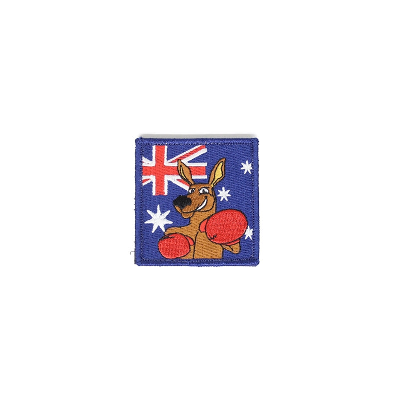 Square woven patch with the Australian National flag and a Boxing Kangaroo