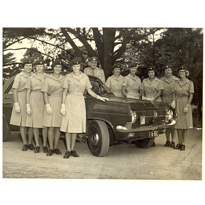 On February 12, 1951 the Women’s Royal Australian Army Corp (WRAAC) was established to cover a manpower shortage due to the Korean War and national service. Previously women had served in the Australian Women’s Army Service (AWAS) during WWII from August 1941 until June 1947.The introduction of WRAAC into the Citizen Military Forces (CMF) was approved in December 1951 with recruiting beginning in June 1953. Training was based on the same syllabus as the Australian Regular Army (ARA) and the uniform worn was also the same as the ARA. The Southern Command (Victorian) CMF unit was raised as 8 WRAAC Coy until 1960 and then became 3 WRAAC Coy as a result of an army re-organization. In the mid 1970’s the name of the CMF was changed to Army Reserve (ARES). The WRAAC CMF/ARES was disbanded in 1976 and all members were recruited and enlisted in male units.