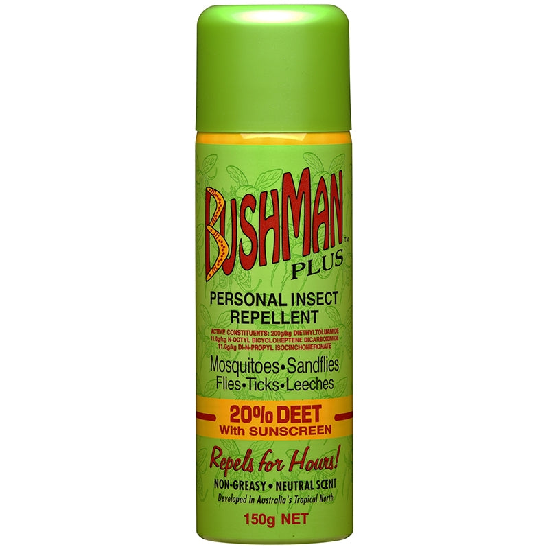 Bushman Plus Aerosols have all been specially formulated to provide lasting protection from biting and annoying insects while remaining unnoticeable on the skin. Just a light spray on exposed skin and where clothing fits tightly to the body will provide hours of protection. In addition, Bushman Aerosols feature a unique formulation that is non greasy, smells nice and is the first and only aerosol repellent with built-in sunscreen SPF15 for added protection.