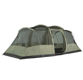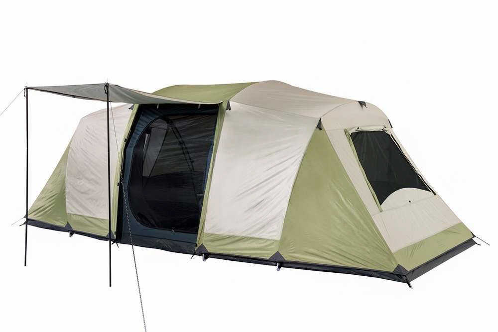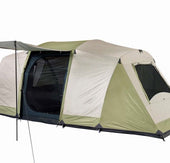 The Oz Trail Seascape is a 3 room dome with an ideal layout for families it has two private bedrooms separated by a central living area. This tent has head height throughout the entire length of the tent. It has a spacious front awning for sheltered outdoor dining or living (awning poles not included). This tent has large rear and side windows provide excellent ventilation, it also has oversized D doors front and internally for easy access.