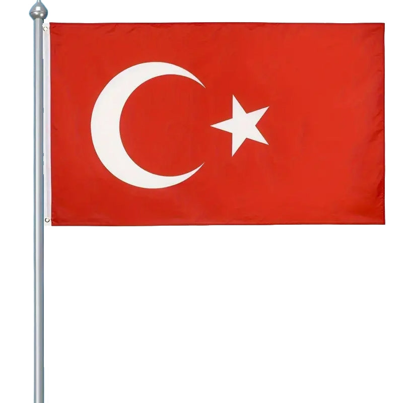 The flag of Turkey (Turkish: Türk bayrağı) has a white crescent moon and a star on a red background. The flag is called Ay Yıldız (literally, moon star) or Alsancak (red banner) in Turkish.