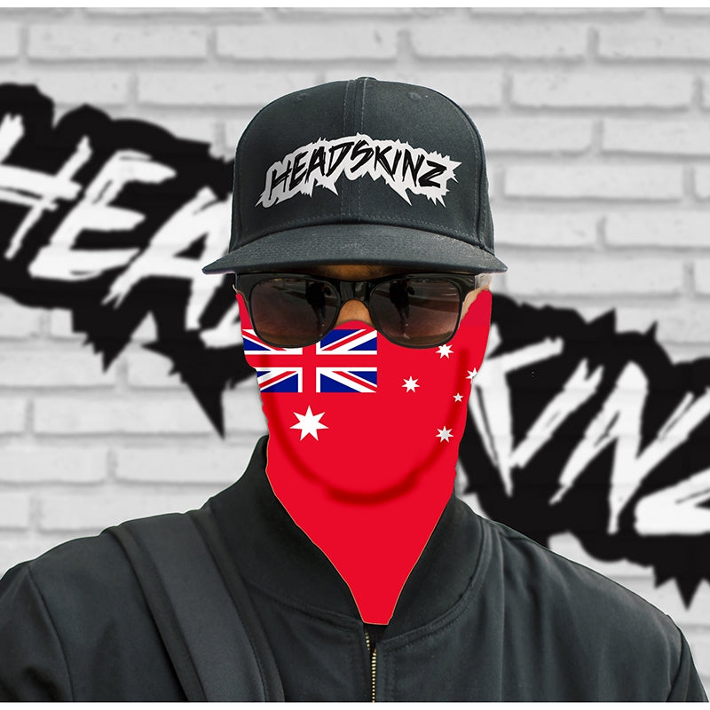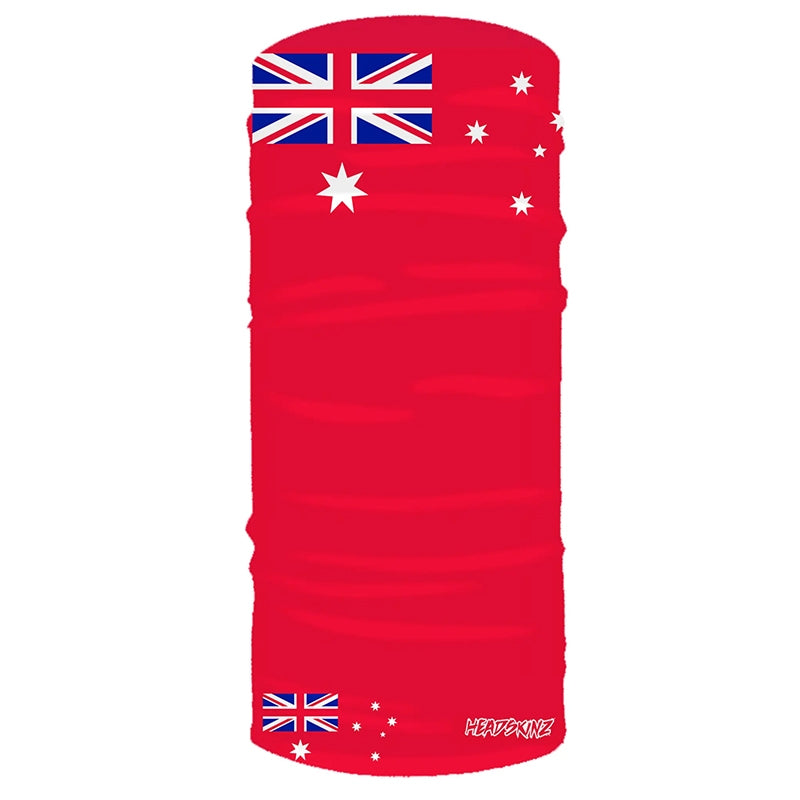 Here is an awesome addition to the suite of Headskinz Aussie Flag designs – the Australian Red Ensign Flag Headskinz. The flag was officially proclaimed in Australia in 1901, and is the flag flown at sea by Australian merchant ships. In the early years of federation, the red ensign was an important symbol of Australian identity as the main flag used by private citizens on land and at sea, and Aussies have fought under it during both world wars. We think it is a great addition to our Aussie flag range. Deck yourself out in Aussie Headskinz, whether its this Australian Red Ensign Flag Headskinz, the Aussie Flag design, or the Aussie Flag Blacko Headskinz.