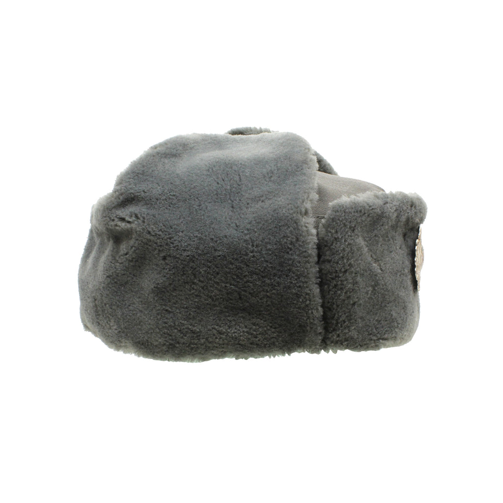 - Faux Fur (Kunstpelz): The hat's exterior features a durable, grey faux fur trim, often referred to colloquially as "fish fur". This material provided significant insulation in freezing temperatures.
