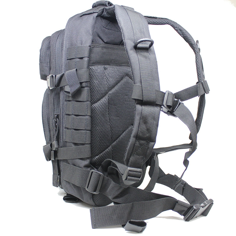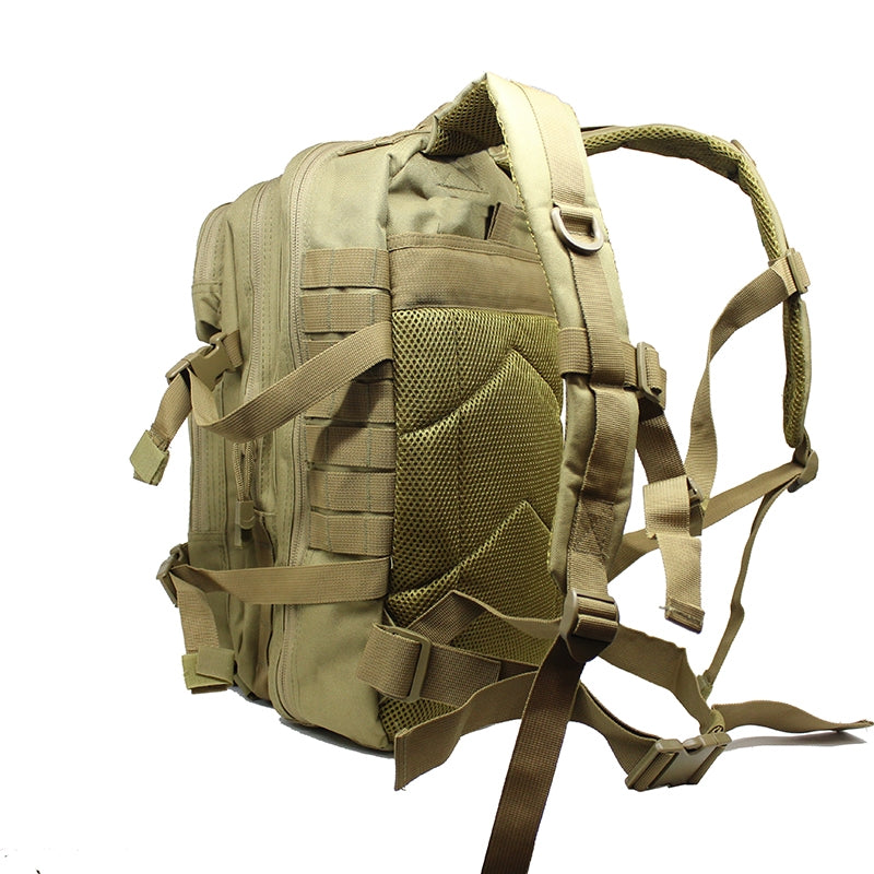 The MOLLE Assault Pack is specially designed to maximise space and strength for those who value quality. With two large compartments, two small compartments, two internal organisers, one inner pocket and one inner mesh pocket, the MOLLE Assault Pack gives you enough space to organise your gear in a compact way with flexible options. An extensive MOLLE webbing system on the pack gives you great versatility to attach any molle pouches you require, such as tool pockets, tac pouches or first aid kits. Zips along the length of the pack allow for complete opening, ensuring that you can access and organise your entire pack without having to rearrange anything. Convenient adjustable straps at the base of the pack allow you to attach essentials such as mats, sleeping bags or hike tents. With adjustable hip and shoulder straps and a breathable mesh throughout the harness system, the MOLLE Assault Pack guarantees comfort.