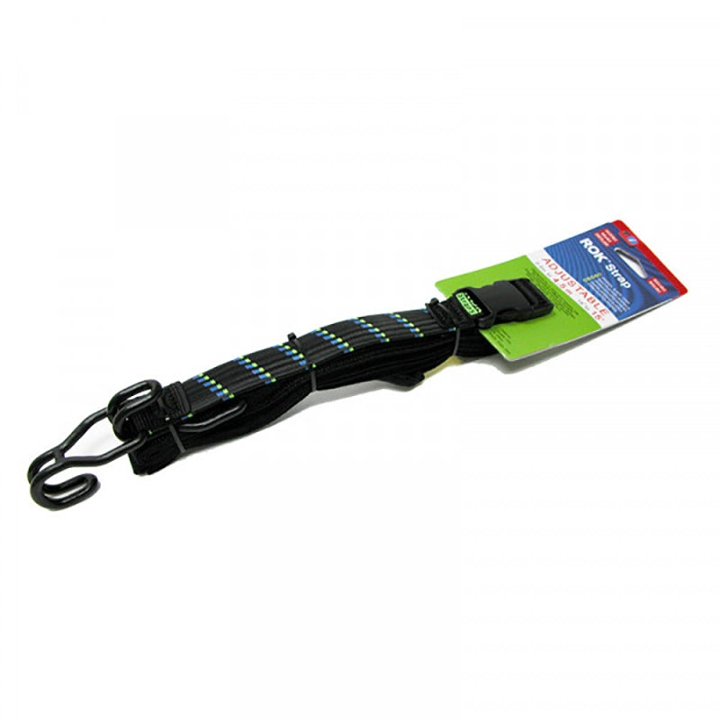ROK Adjustable Length straps feature a two piece construction with a sturdy adjustable connector buckle. All straps in this range have the same one piece stretch 300 x 25mm core section, the second piece is a length of tough polyester webbing strap. The innovative design has significantly less recoil if released under tension, while the ROK™ Hooks are designed to eliminate bending, breaking and sharp edges. This superior design makes ROK Straps safer, stronger, longer lasting and quicker to use then other straps on the market.