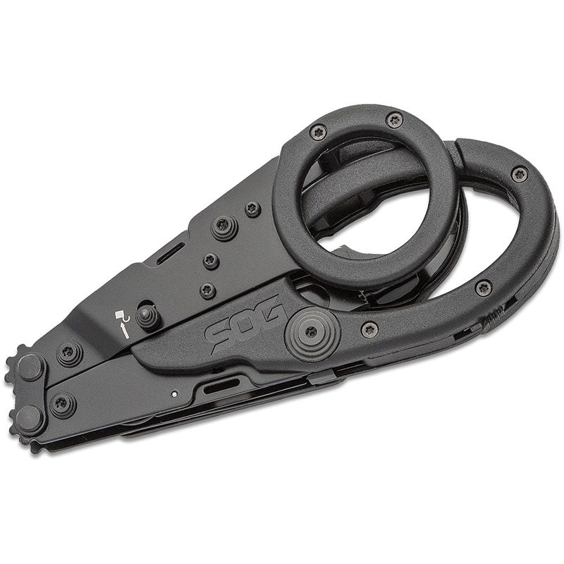 The pair is enhanced with the Compound Leverage system. One of SOG's showstoppers. Because of the serrations in the hinge the force you apply on the scissors increases. As such you can effortlessly cut through thick layers of jeans or leather.