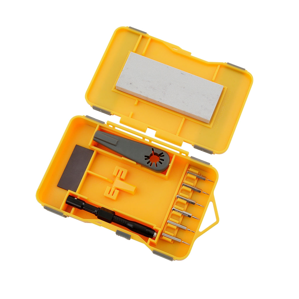 - Blade holder secures mechanical blade for precise sharpening