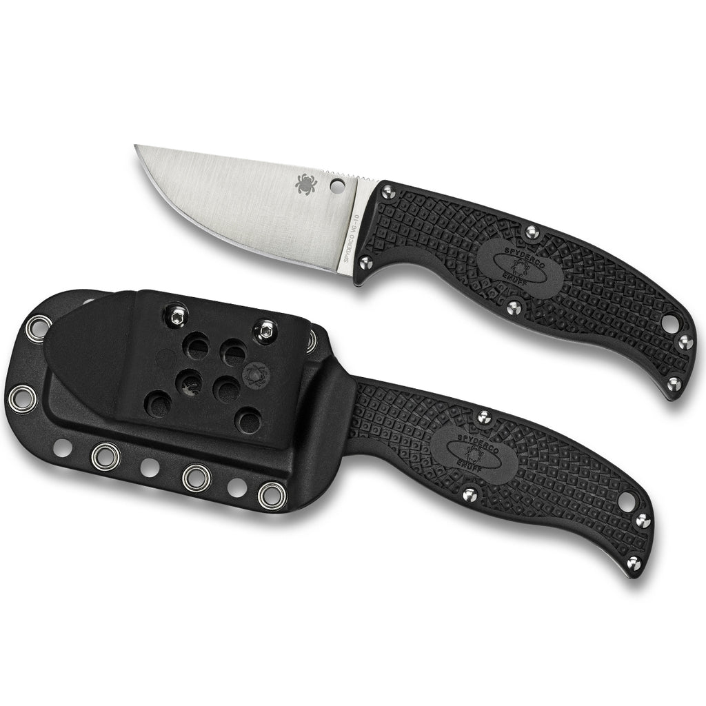 So how much blade is just enough? The answer to that question is Spyderco’s Enuff series—a family of three knives that share a common handle, overall size, and sheath design, but offer distinctly different blade styles. Enuff blade shapes include a clip point, a leaf-shaped blade, and a sheepfoot, all with a 2.75-inch blade length that provides outstanding cutting performance in an amazingly compact package.
